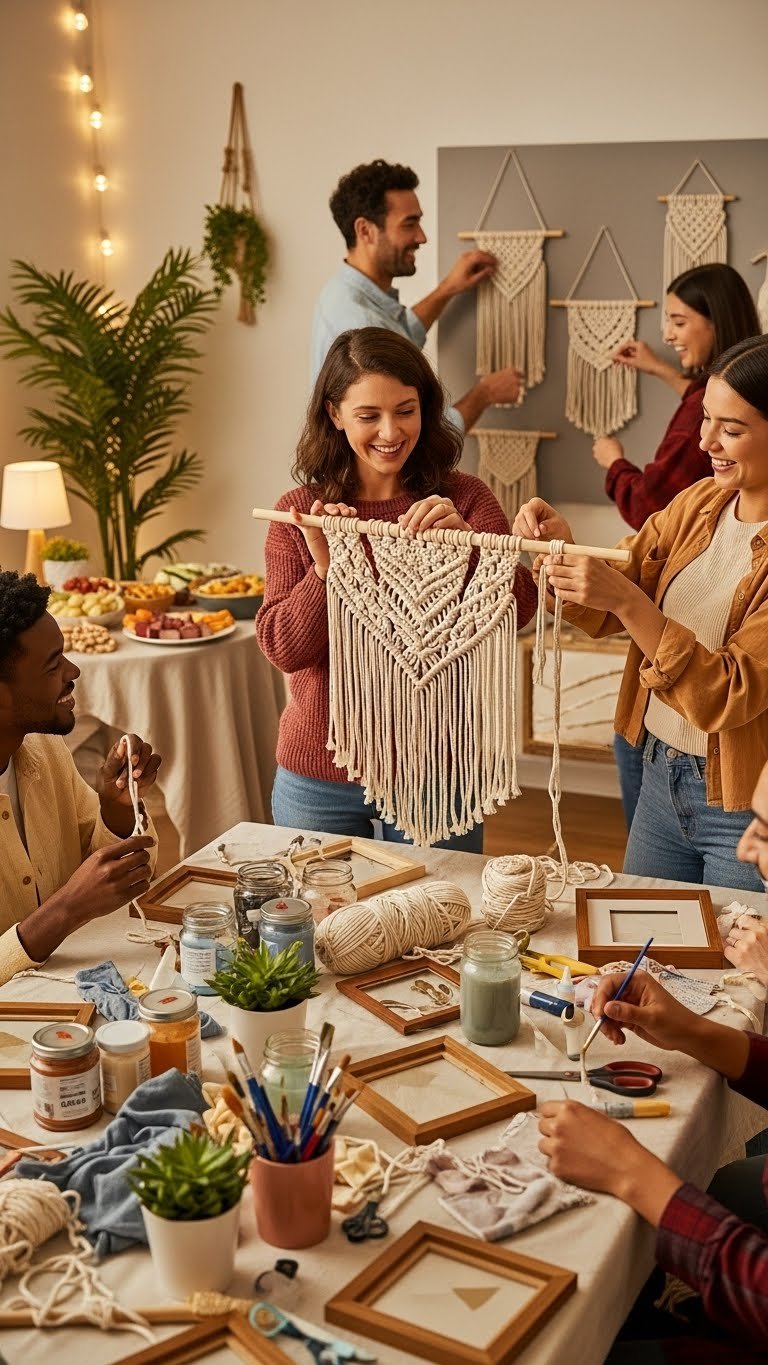 Often, hosting a group DIY or craft night turns simple projects into decor you’ll actually want to display — and it’s a great way to refresh your rental without permanent changes. Invite friends for a craft potluck, swap supplies, and make communal macramé hangings or painted frames. You’ll build unique pieces, save money, and enjoy flexible, renter-friendly style that reflects your collective creativity.