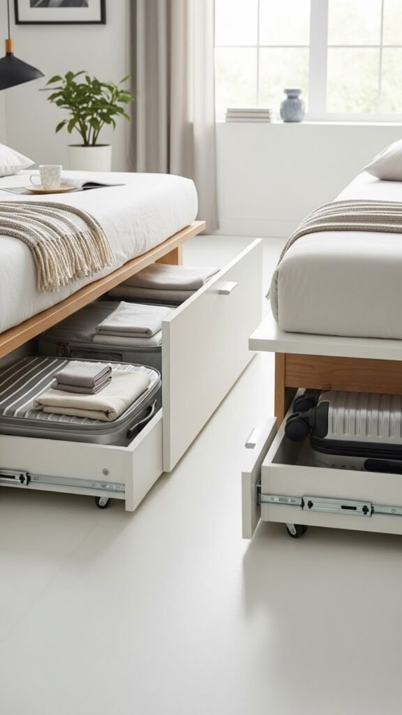 Creating dedicated luggage platforms or ensuring generous under‑bed clearance makes packing and unpacking effortless and keeps your bedroom feeling uncluttered.