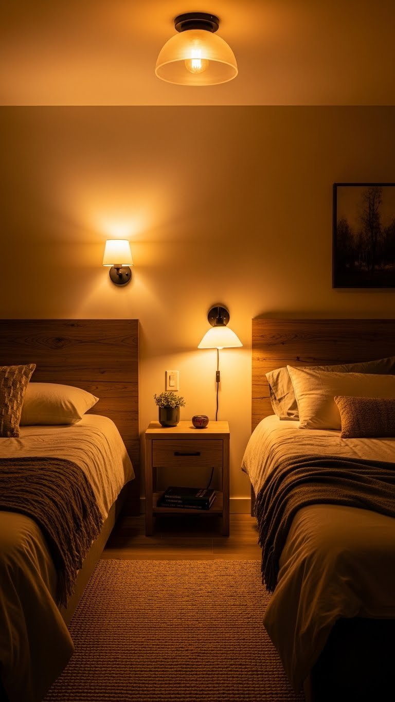 Warm lighting sets the mood; smart furniture sustains it. Choose clean-lined pieces that free your space and mind: a low-profile bed with sleek storage drawers, a streamlined dresser, and a convertible bench that doubles as seating and hidden storage. You’ll create airy, flexible zones that feel curated yet effortless, letting you enjoy hotel-worthy order without sacrificing spontaneity or personal style.