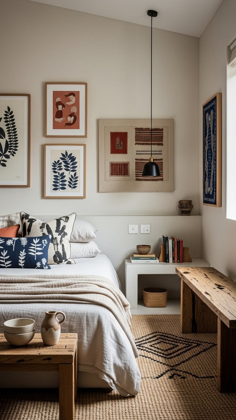 When you anchor your bedroom with local artwork or materials, you give the space a sense of place and personality that mass-produced pieces can’t match.