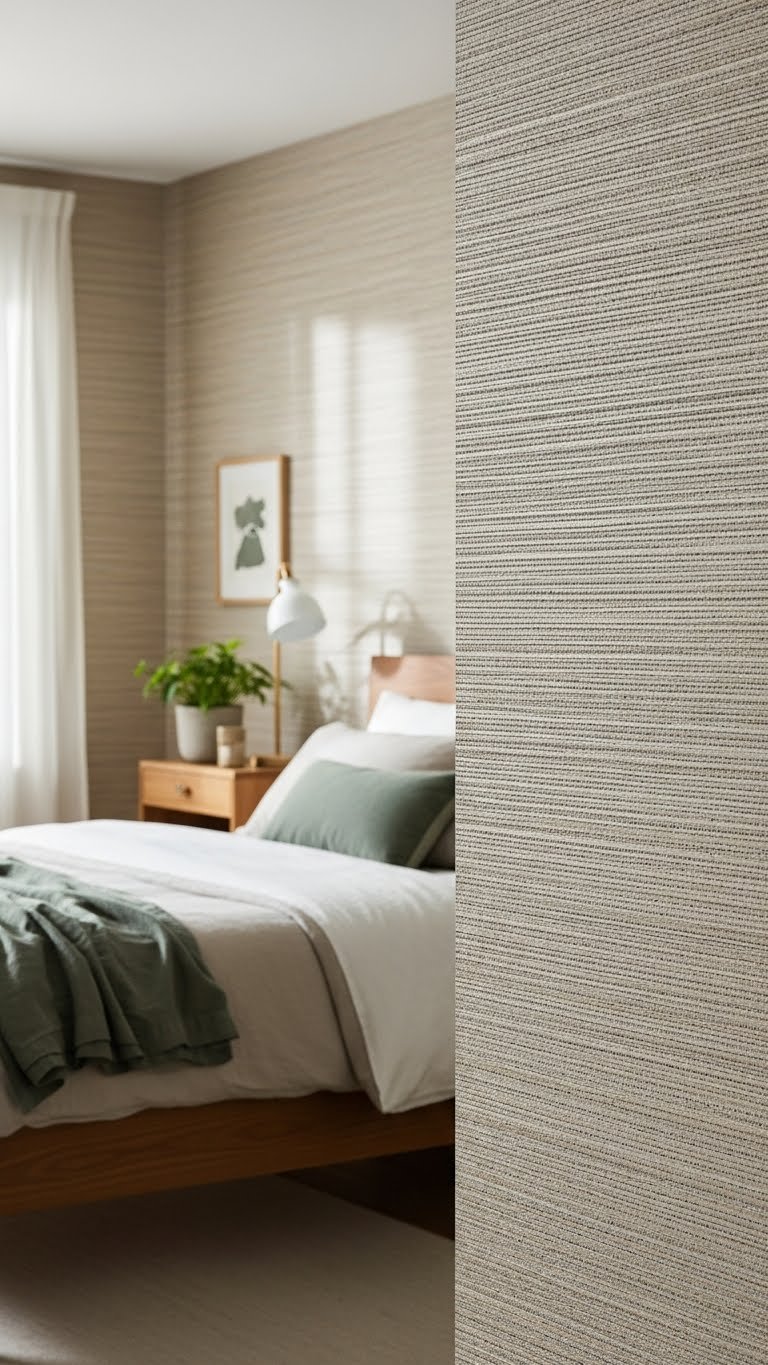 You’ll love how natural fibers create a woven texture that reads modern yet organic. Choose layered neutrals to keep the mood serene; the subtle sheen catches light, giving depth without fuss. Installation’s straightforward, and the result feels free, refined, and lived-in.
