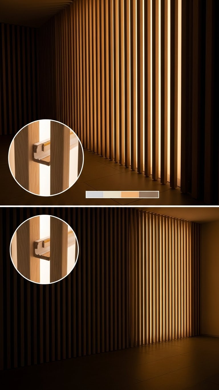 When you install vertical slats with integrated LED lighting, the wall becomes both a sculptural backdrop and a subtle light source that transforms mood and scale. You’ll run LED channels behind clean timber slats, calibrate slat spacing for rhythm and sightlines, and choose dimmable tones to control atmosphere. It’s a sleek, liberating upgrade that feels custom without trapping you in a single style.