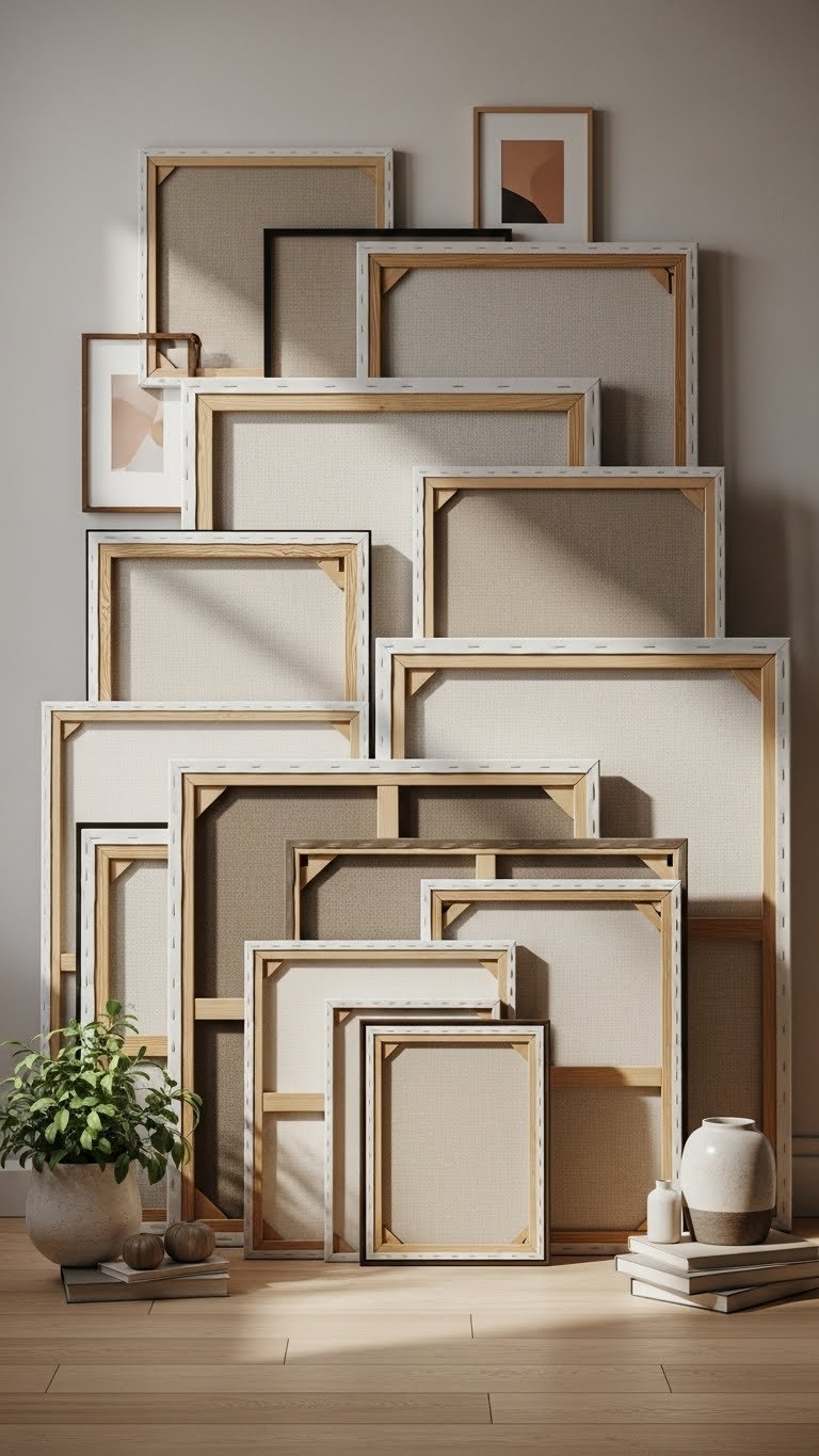 Lean a mix of prints and canvases against the wall to create an effortless, layered art vignette that feels curated rather than contrived. You’ll arrange leaned canvases and layered frames of varying sizes, textures, and finishes, overlapping edges for depth. Keep a relaxed rhythm, swap pieces seasonally, and let negative space breathe so your display stays personal, flexible, and easy to refresh.