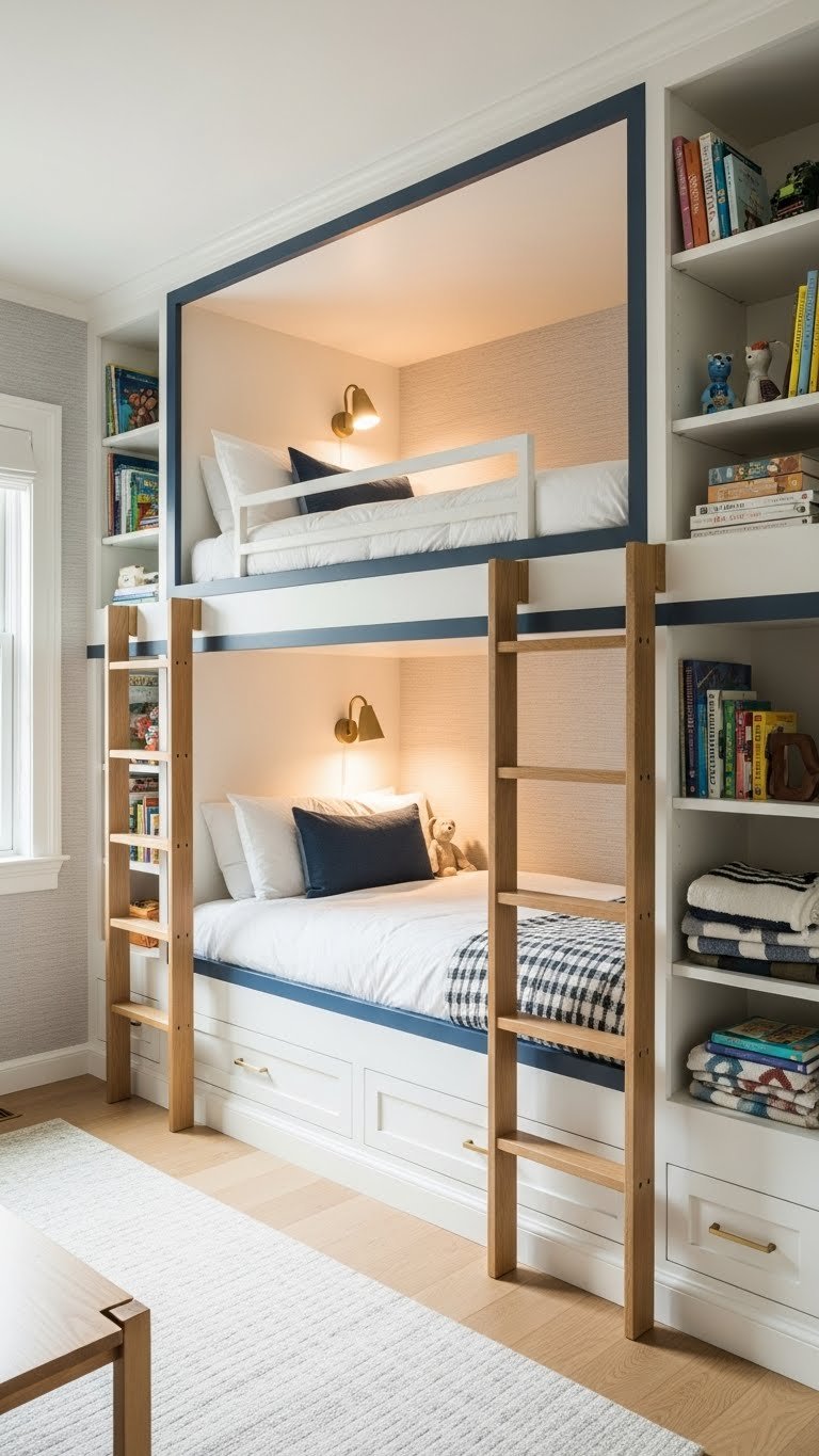 Built-In Bunk Beds With Contrasting Trim and Cubbies