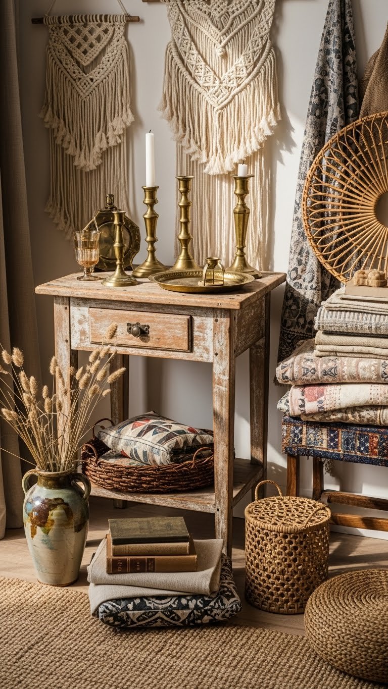 Mix thrifted brassware with worn woods and woven accents for effortless soul. Hunt intentionally, trust your instincts, and curate a relaxed, collected vibe that feels free, personal, and anything but mass-produced.