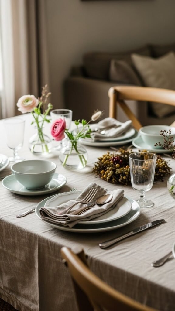 For everyday ease and enduring style, build a reusable tablescape that looks polished without demanding constant effort. Keep a simple seasonal centerpiece you swap monthly, fold fabric napkins you’ll reach for, and tuck everyday florals into low vases.