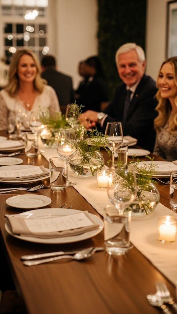 When you keep centerpieces low, conversation flows naturally across the table—guests see one another, eye contact stays easy, and the room feels more intimate without crowding the place setting. Choose low arrangements that complement your style, sit items at conversation friendly heights, and leave sightlines clear. You’ll foster relaxed interactions, let meals breathe, and maintain elegant simplicity that respects everyone’s freedom.