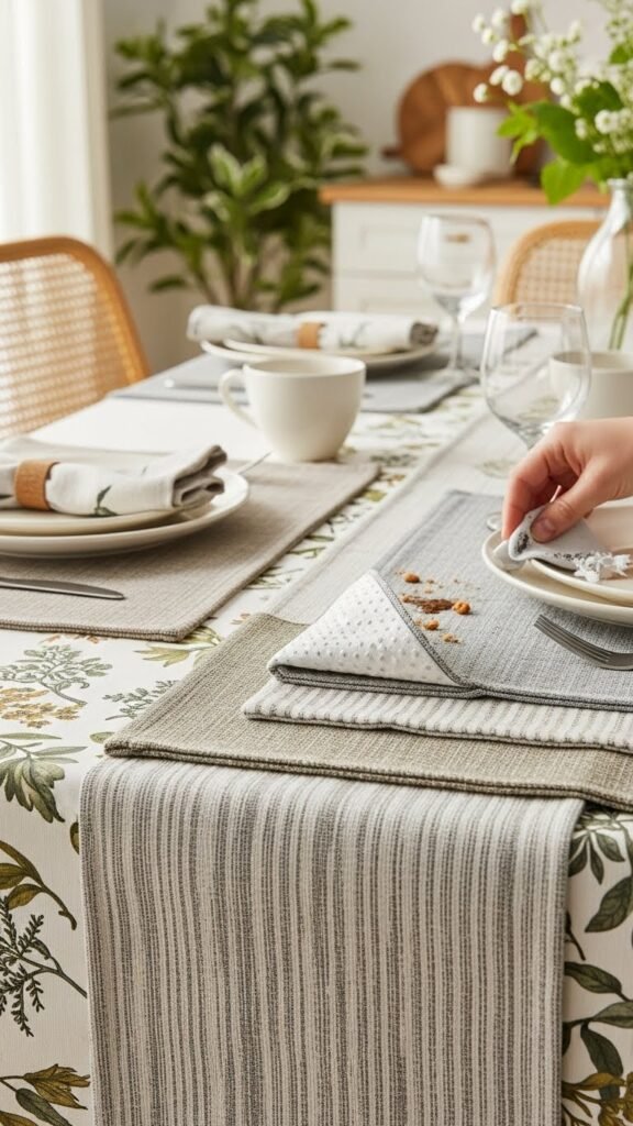 Pick non slip backing for steady settings, then mix patterns confidently to create a relaxed, elegant table that invites spontaneous gatherings.