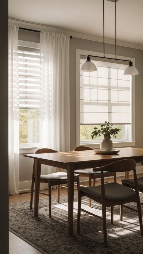 You’ll adjust mood and glare with ease, creating a calm backdrop for meals and conversation while keeping the room uncluttered and free to evolve with your tastes.