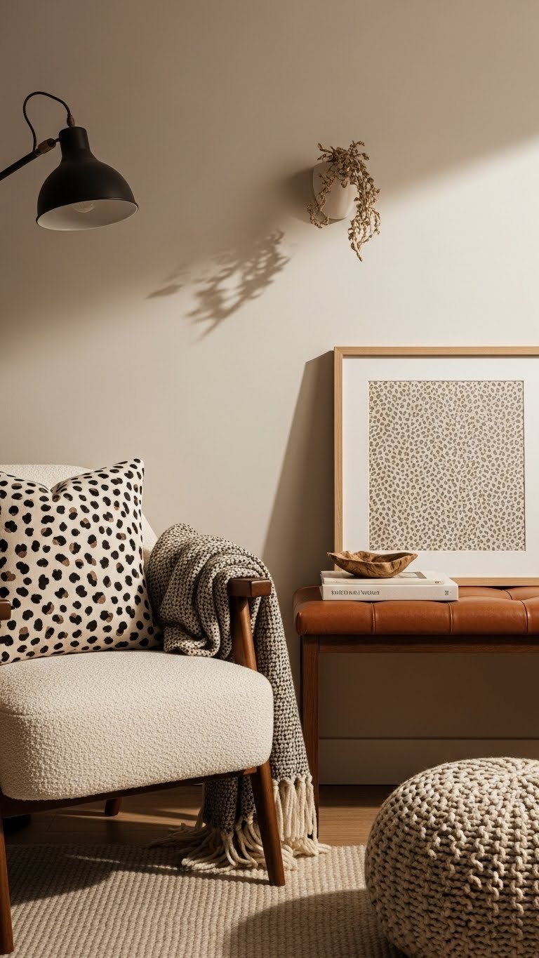Want to add personality without overpowering a room? Use animal prints as accent pieces—think throw pillows, a bench, or framed fabric—so you can play bold without committing.