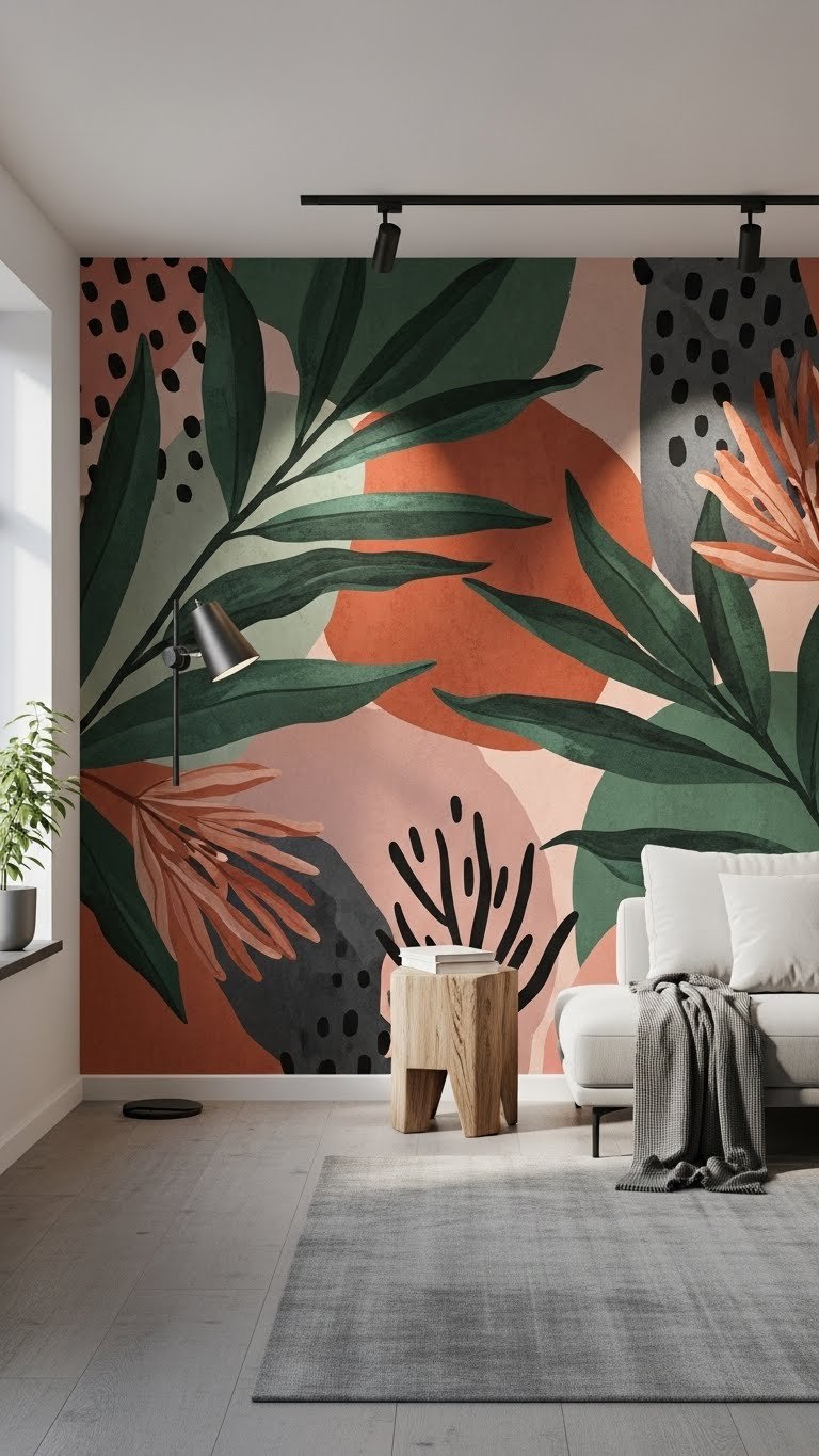 When you scale up a mural, it transforms a room from decorative to immersive—think sweeping botanicals, abstract color fields, or oversized geometrics that set the tone without competing with furnishings. You’ll choose overscale botanicals or bold abstracts to define zones, anchor furniture, and express independence. Accent with adjustable mural lighting to dramatize texture and depth, keeping the rest of the space restrained and free.