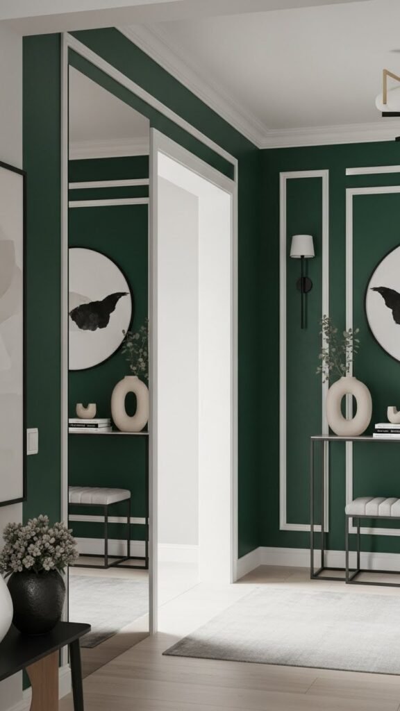 After widening the entry with a reflective surface, introduce a bold accent wall to give the space personality and depth. Choose a saturated hue and pair it with high contrast trim for crisp definition. Use matte finish paint to modernize the look and reduce glare. You’ll create an inviting, confident arrival that feels liberated yet intentionally styled.