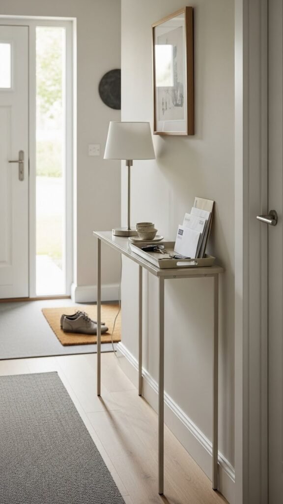 Slide a slim console table into your entry and you’ll keep the path clear while adding useful surface space.