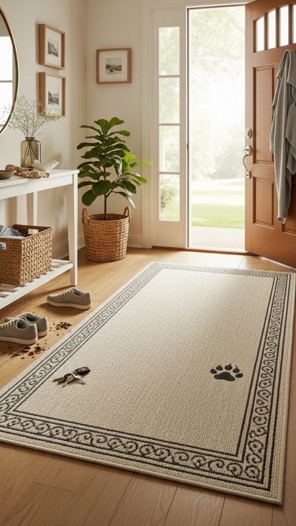 An indoor/outdoor runner rug instantly grounds your entryway and handles whatever life throws at it — muddy shoes, dropped keys, or pet paws — so you don’t have to worry about constant upkeep.