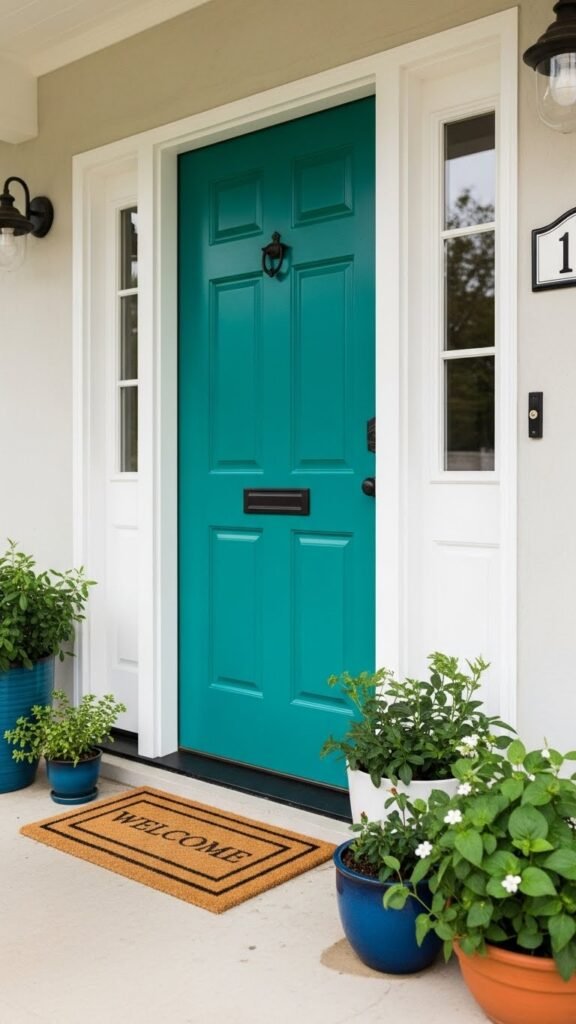 Brightening the entry with a bold front-door color instantly signals welcome and personality while making your home easier to spot for guests and delivery drivers.