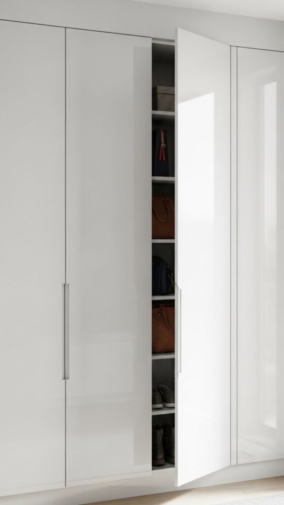 Magnetic latches guarantee easy access without knobs, and tailored shelving maximizes space. Choose finishes that reflect light and free your entryway from visual chaos.
