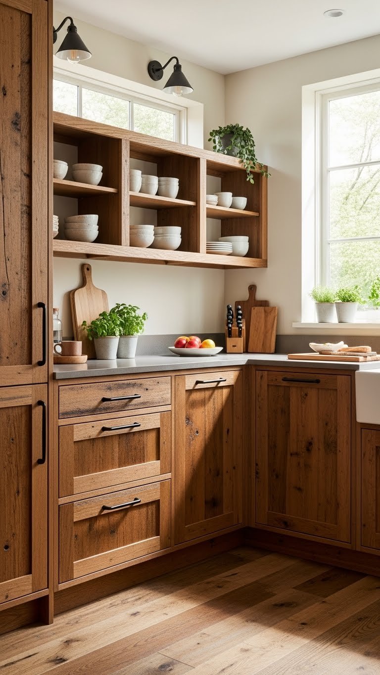 Reclaimed Wood Cabinets for Warmth and Sustainability
