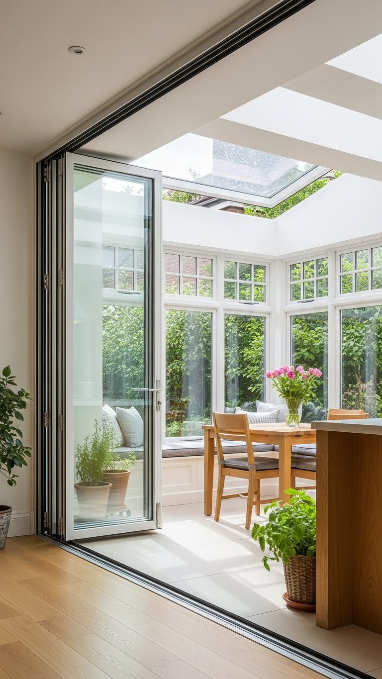 Choose durable hardware, thoughtful thresholds, and minimal frames so you can move freely between indoors and outdoors.