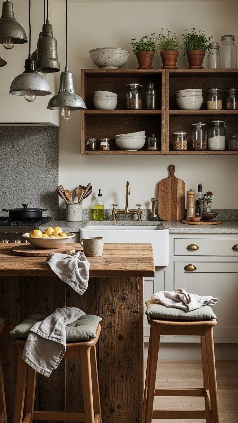 You’ll balance sage accents with creamy neutrals, introduce walnut textures in open shelving or trim, and choose matte finishes so the space feels calm, free, and deliberately lived-in.