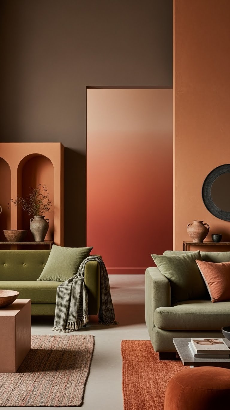 You’ll refine terracotta gradients into focal walls, balance moss tones across textiles, and choose finishes that feel effortless yet curated.