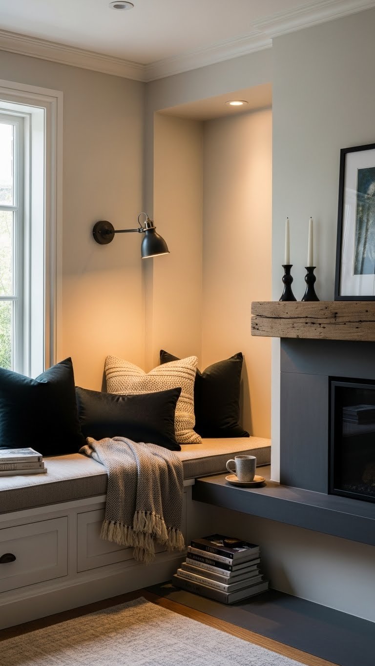 When you want a room to feel both grand and personal, carve out intimate nooks with a built-in banquette and a fireplace to anchor conversation and quiet moments. You’ll use window alcoves and cozy reading recesses, layer luxe textiles, and install focused lighting. Choose streamlined upholstery, mixed textures, and unobtrusive storage so each nook feels free, refined, and effortlessly inviting.