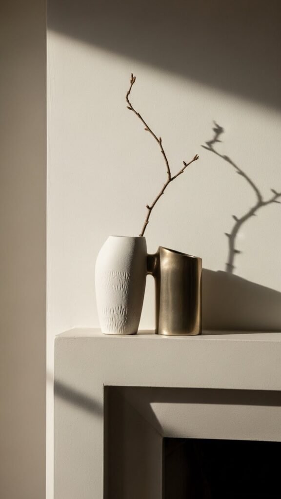 You’ll choose a sculpted ceramic or metal piece for textural contrast against plaster, then set it in asymmetrical placement to create visual tension. It feels modern, freeing, and quietly confident — a curated pause that breathes.