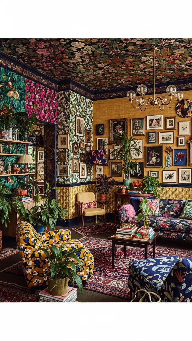When you paper every wall, the room stops playing small and starts performing—maximalist wallpaper turns ceilings and corners into design opportunities rather than afterthoughts. Embrace bold prints, foil wallpapers, and textured grasscloth to create immersive layers that liberate your space.