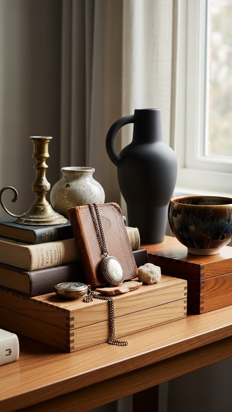 Once your windows make a confident statement, let nearby surfaces echo that same intentionality by arranging small, curated vignettes of treasured objects.