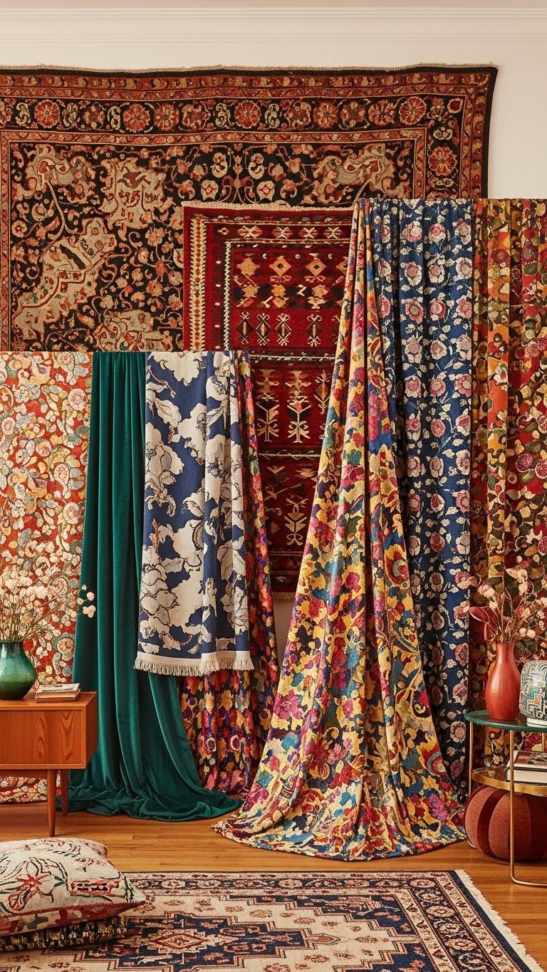 When you hang a tapestry, kilim, or vintage rug on the wall, it instantly becomes art that adds scale, pattern, and tactile warmth to a maximalist room. You’ll explore tapestry installations and printed silk panels to layer color, texture, and movement.