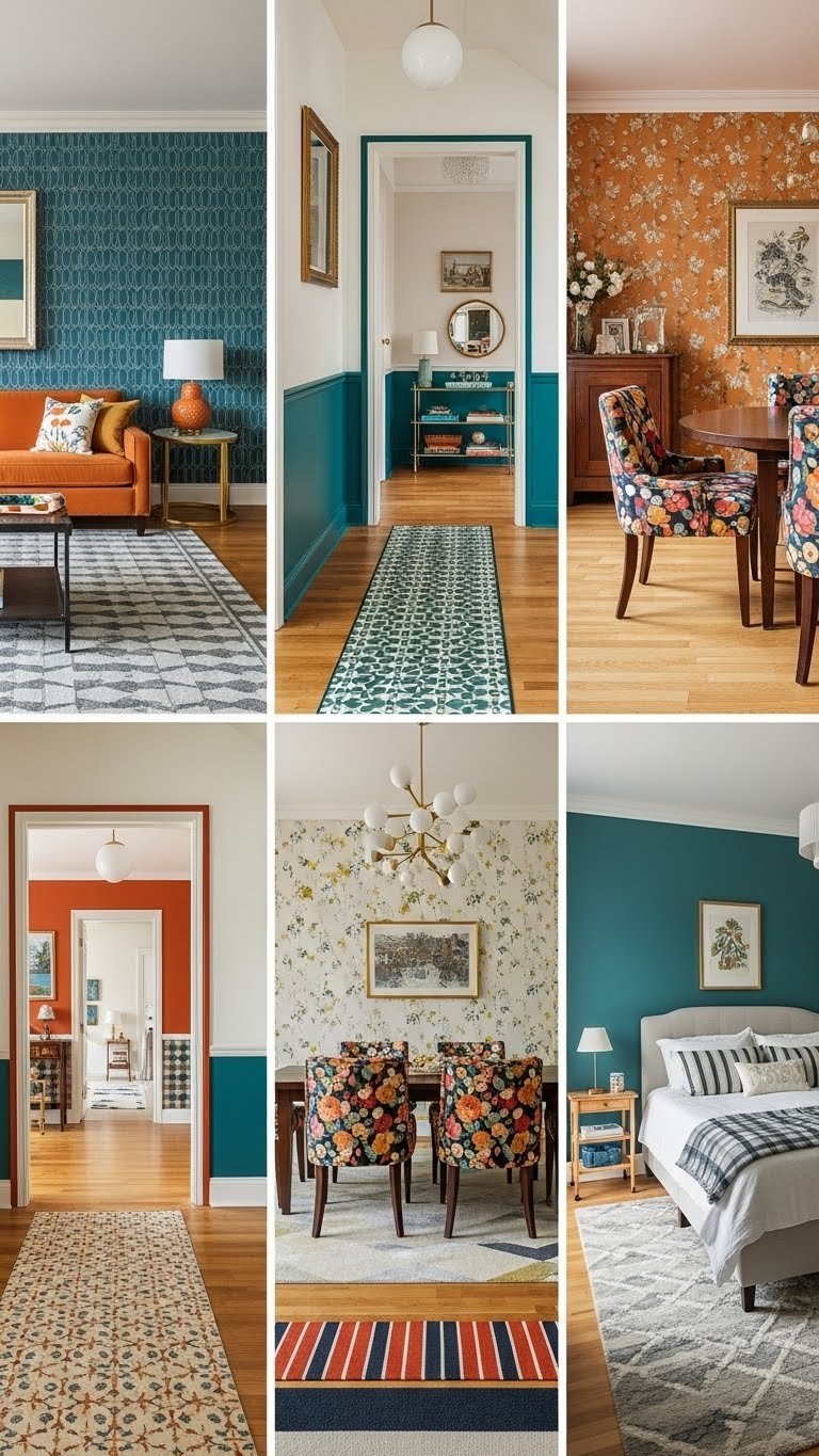 Embrace textile juxtaposition: pair global motifs with bold geometrics so the floor becomes a patterned focalpoint. Layer by scale and color, anchor seating, and let freedom guide fearless combinations.
