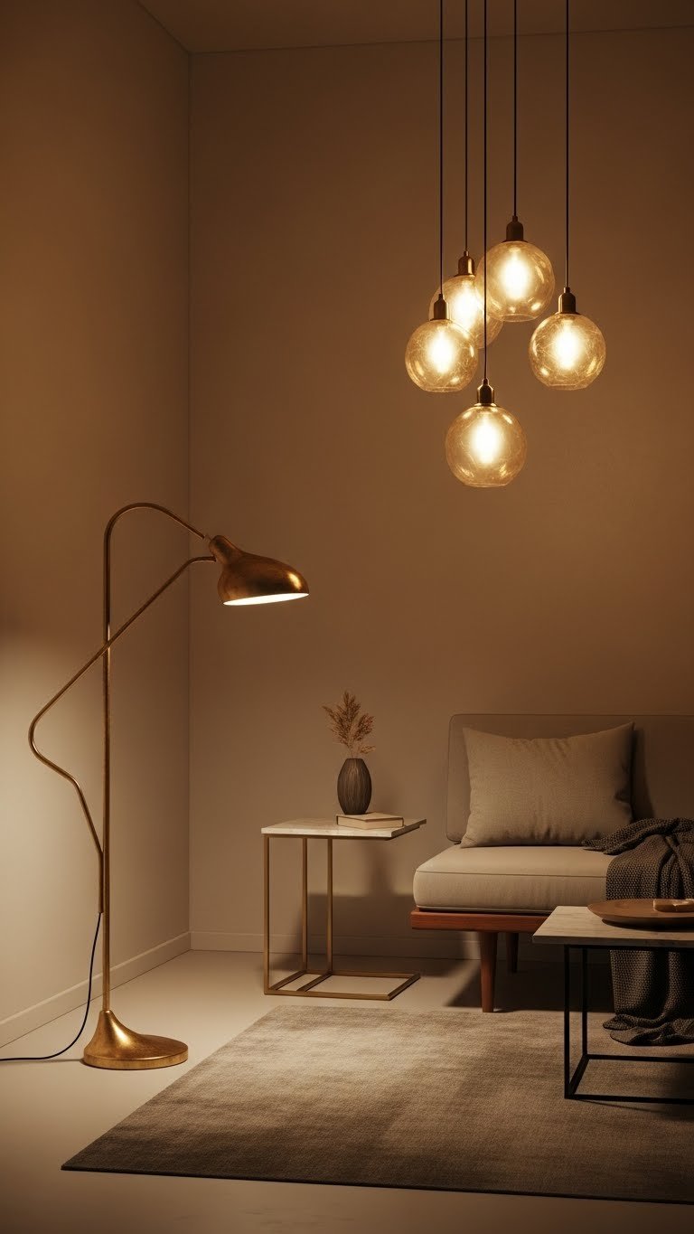 Introduce sculptural lighting fixtures in brass and glass to make your apartment feel curated rather than merely lit. Choose patinated brass arms paired with blown glass shades to add warmth and tactility. Let sculptural silhouettes define corners and float above seating. Install ambient dimmers so you control mood and freedom; fixtures become artful anchors that elevate minimal furnishings without cluttering your space.