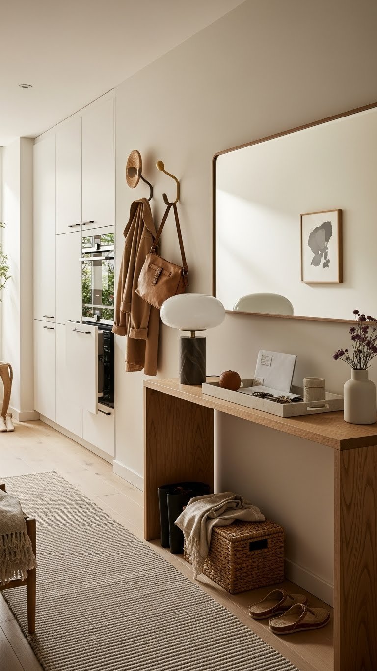 While integrated appliances and hidden tech keep surfaces serene, your entryway sets the tone the moment someone steps in.