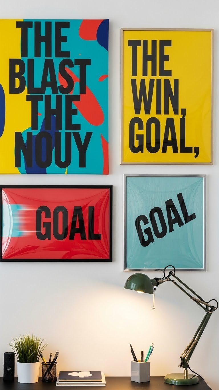 Often you’ll find that a single oversized poster sets the tone for the whole room, giving you a clear visual anchor that boosts focus and morale.
