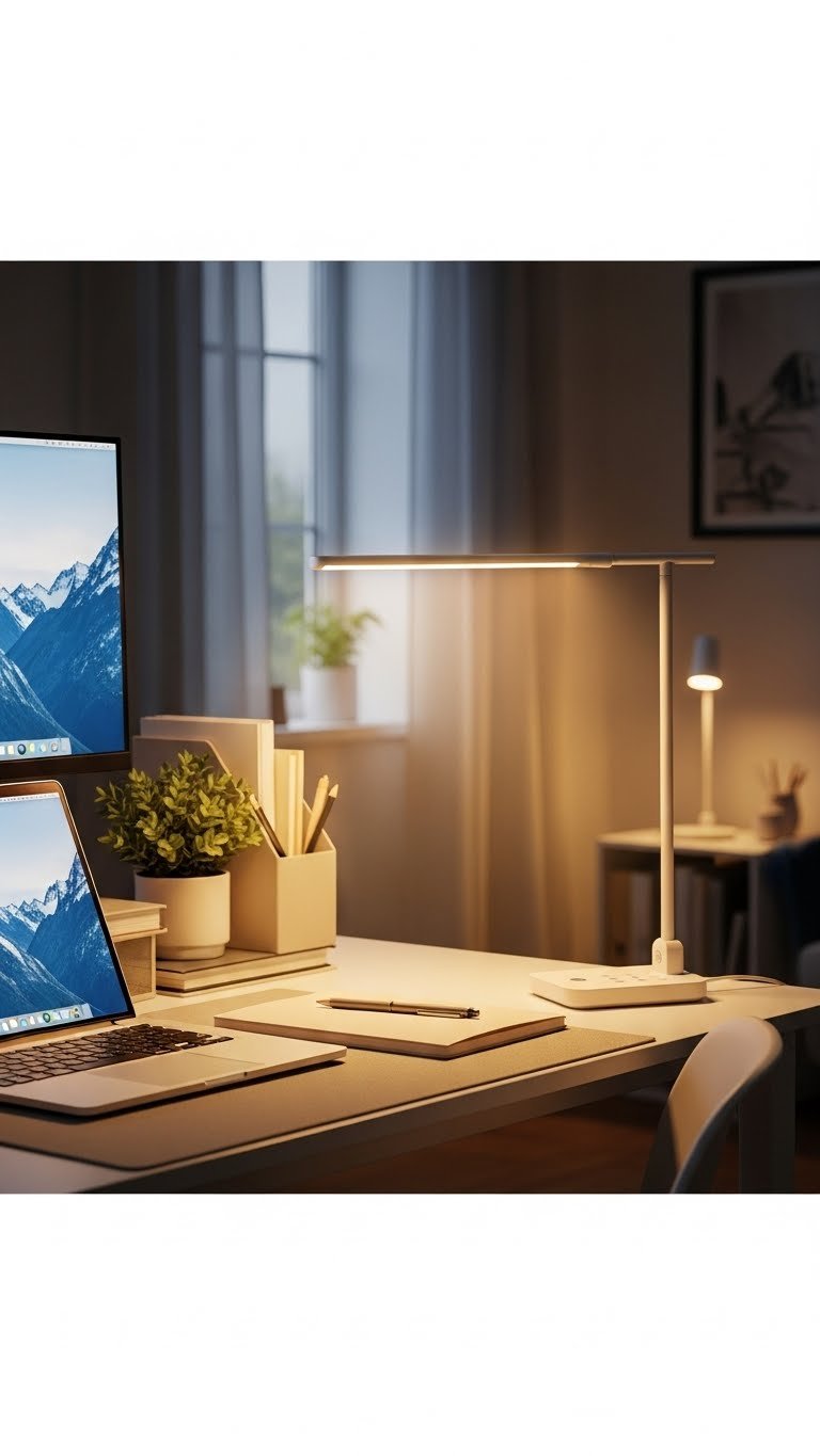 Choose fixtures with adjustable brightness and warm color temps, position lamps for glare reduction, and pick slim, movable designs that free your space — practical, chic, and eye-friendly.
