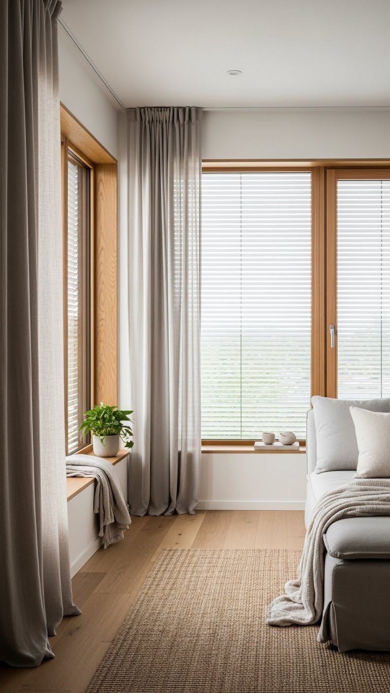 Embrace uncluttered sills, warm timber frames, and breathable fabrics to keep spaces airy and free.