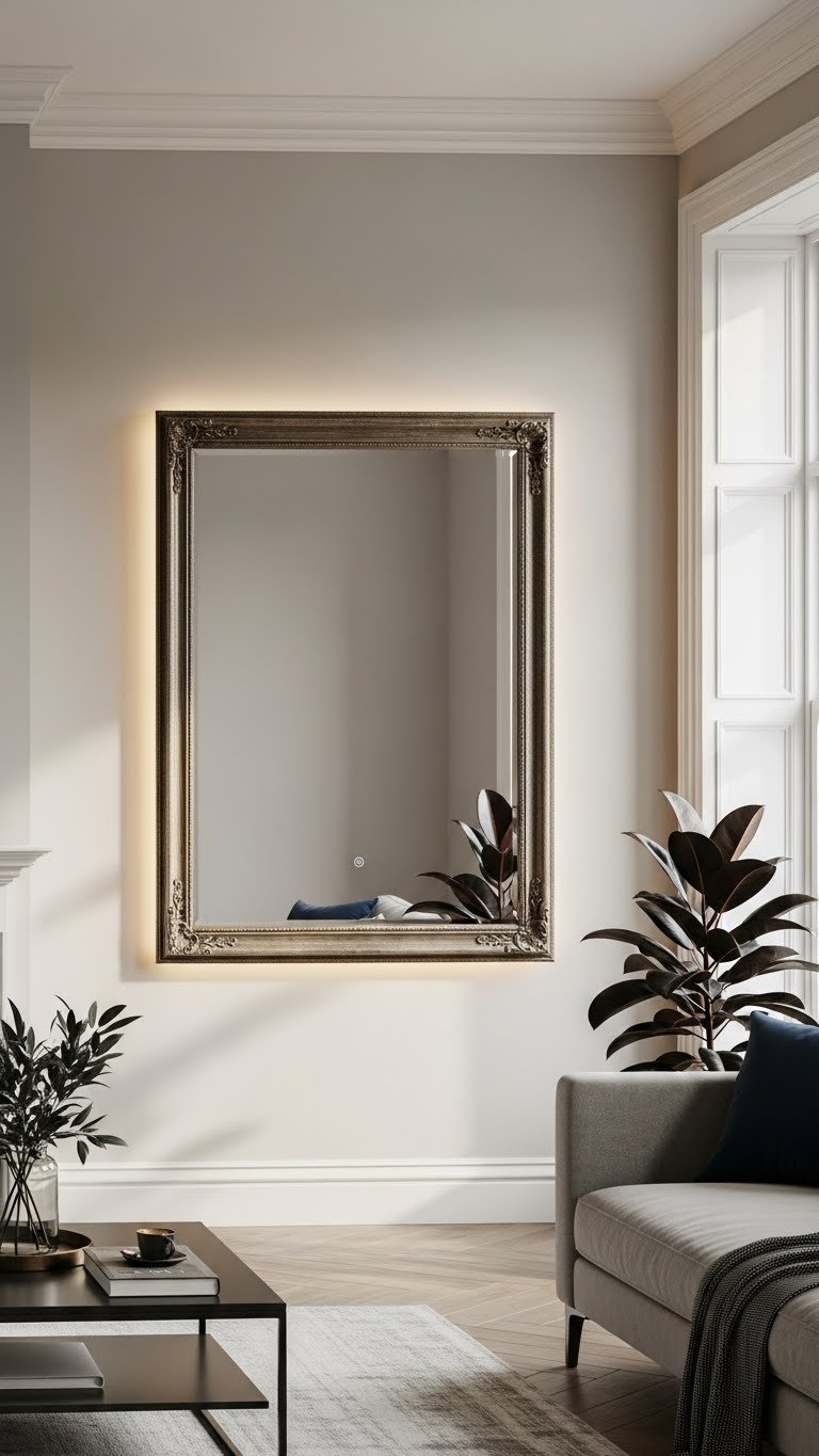 Choose an antique frame for character and pair it with subtle LED backlighting to create depth without clutter.