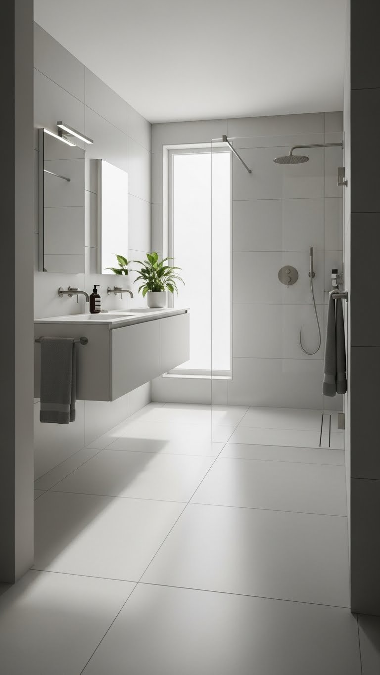 When you choose large-format or rectified tiles, you’ll visually expand a small bathroom by minimizing grout lines and creating cleaner sightlines; the result feels more seamless and modern.