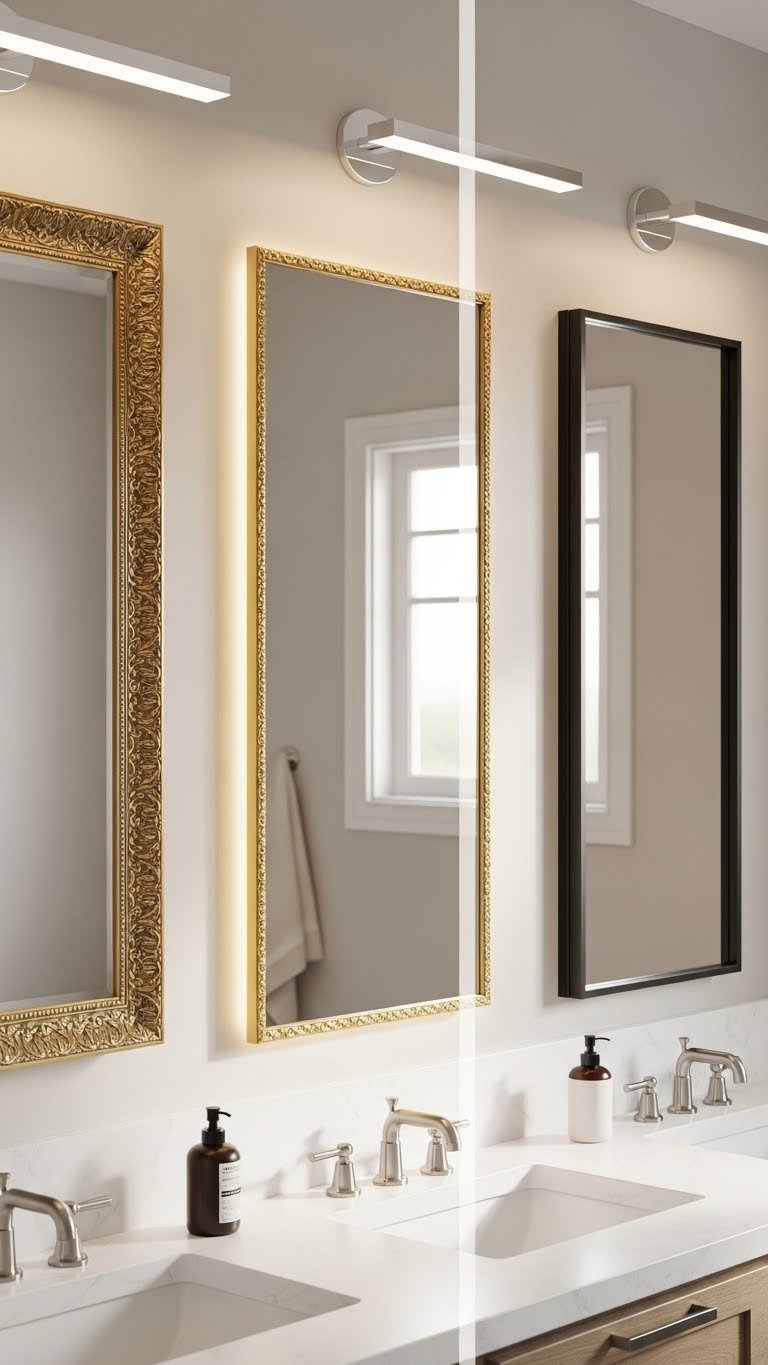 Adding a frame to your bathroom mirror instantly lifts the room from utilitarian to curated — and you don’t need a full remodel to do it. Choose lightweight ornate moulding for drama or slim metal for minimalism.