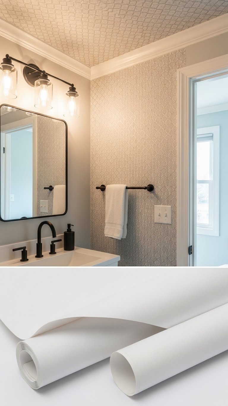 You’ll create a bold focal point with a moisture resistant, high-quality finish. Choose peel stick options for easy updates, favor ceiling application to widen the space, and pick tactile patterns that feel luxe without overwhelming your freedom-focused design.
