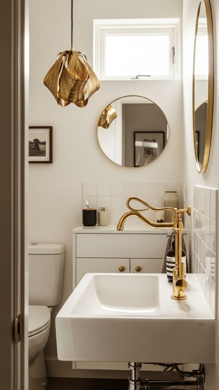 If you splurge on one standout fixture—a sculptural faucet, a statement light, or a luxe vanity—you give the whole small bathroom instant character while keeping the rest budget-friendly; choose quality where it shows and save on paint, hardware, and accessories to stretch your dollars without sacrificing style.