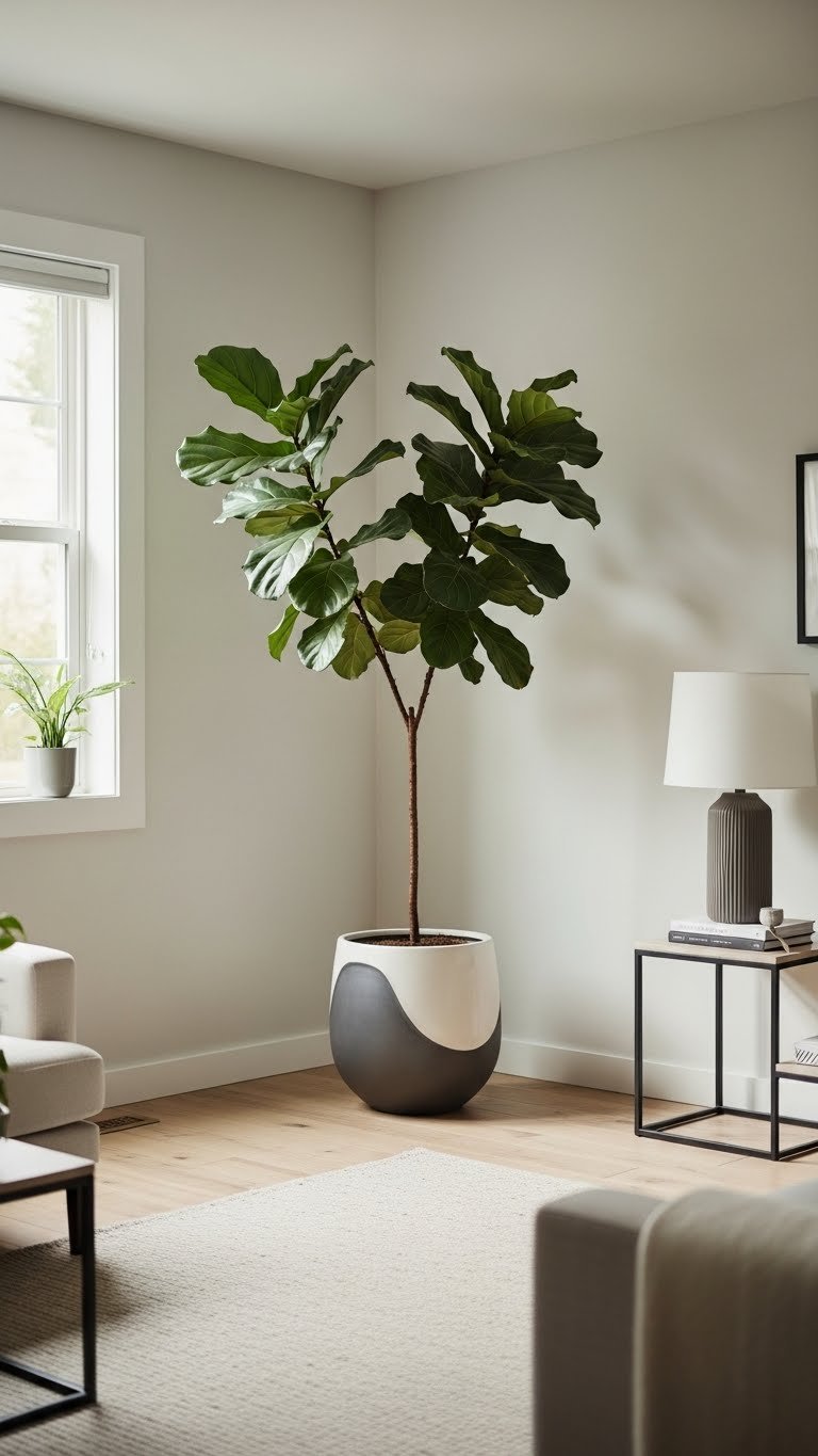 When you want instant drama, bring in one oversized plant—think a fiddle leaf fig, monstera deliciosa, or tall rubber tree—to anchor the room and lift the eye.