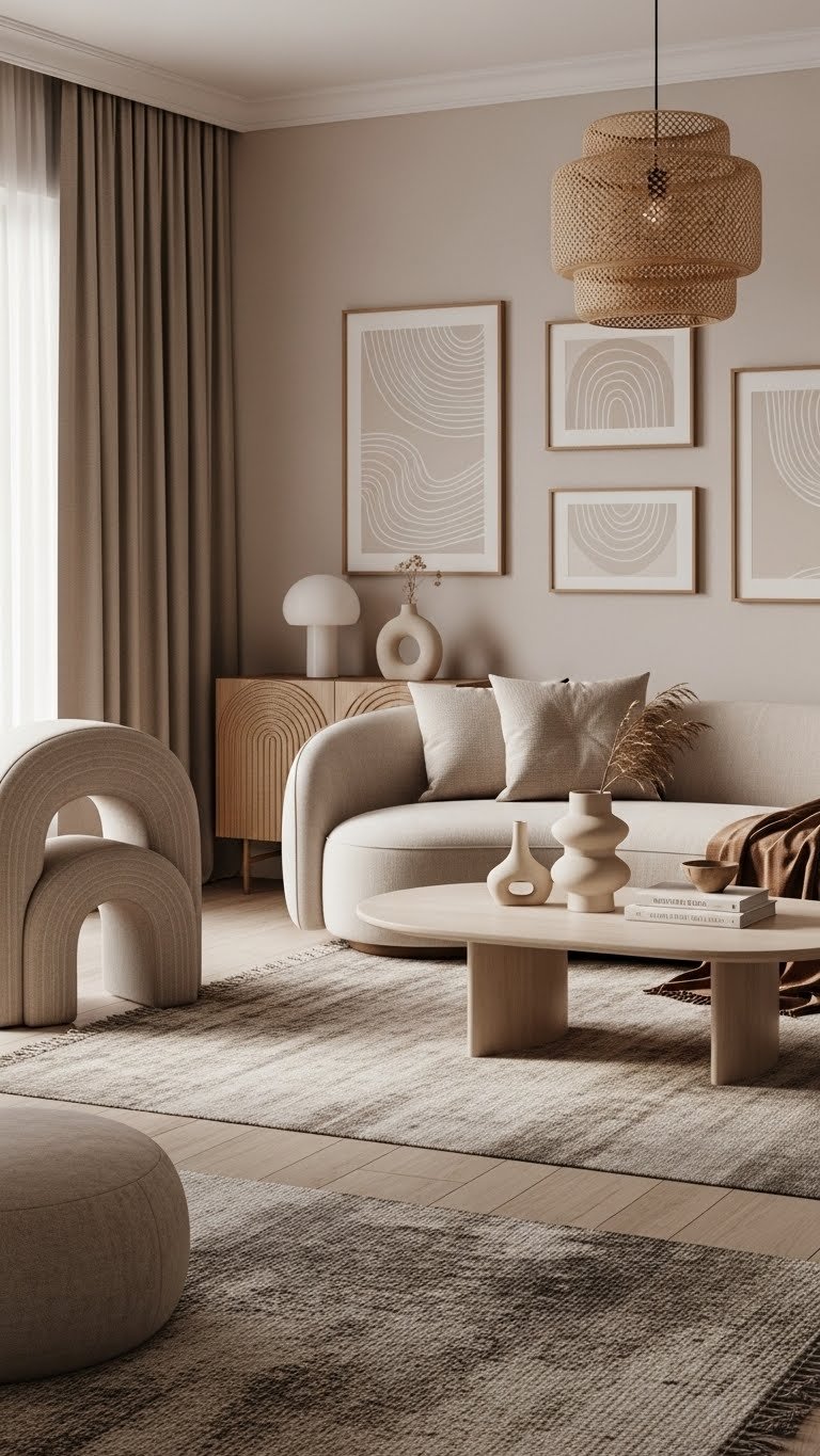 Evolving your space by swapping sharp angles for flowing lines instantly softens the room’s vibe and invites touch; curved sofas, rounded coffee tables, and arched chairs break up rigid geometry and make interiors feel more relaxed and modern.