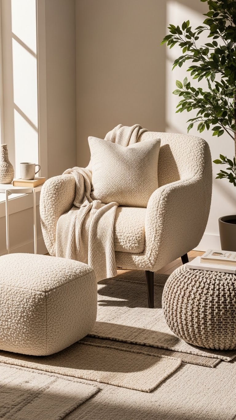 Create a Cozy Nook With Bouclé Chairs and Soft Throws