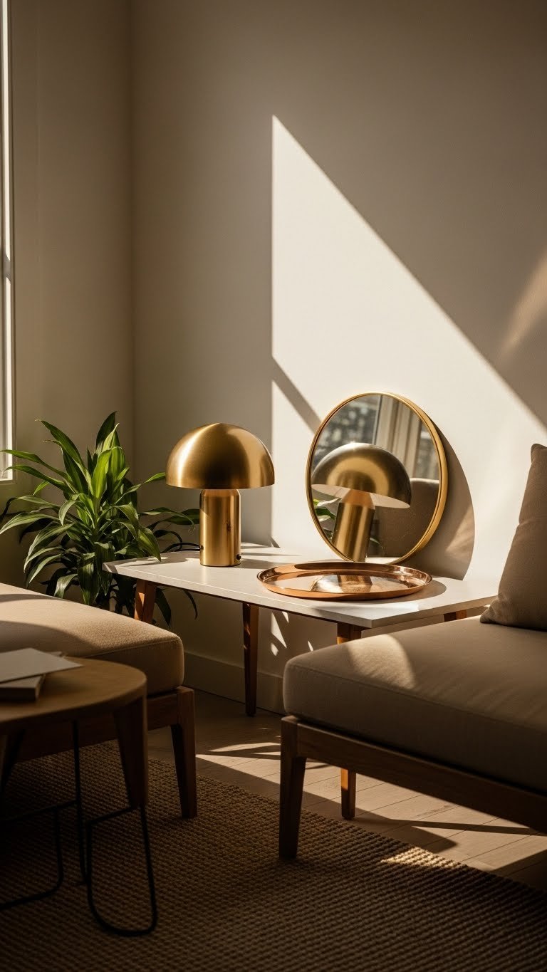 Often, a single metallic piece is all you need to lift a room—use it as a punctuation mark rather than a theme. Choose one sculptural lamp, mirror or tray so you’ll enjoy a subtle sheen without overdoing it. That measured spark creates tonal contrast, highlights shapes and keeps your space feeling open and free—polished, intentional, and utterly uncluttered.