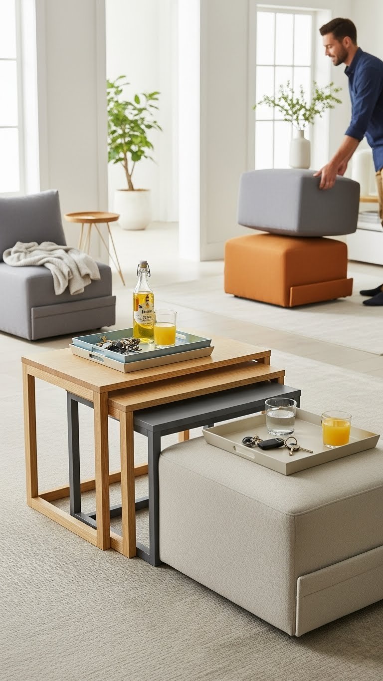 Use Nesting Tables and Ottomans for Flexible Surfaces