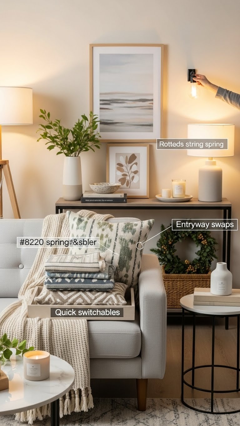 You’ll keep a small pile of Quick switchables—throws, cushions, art—and plan Entryway swaps for an instant welcome.