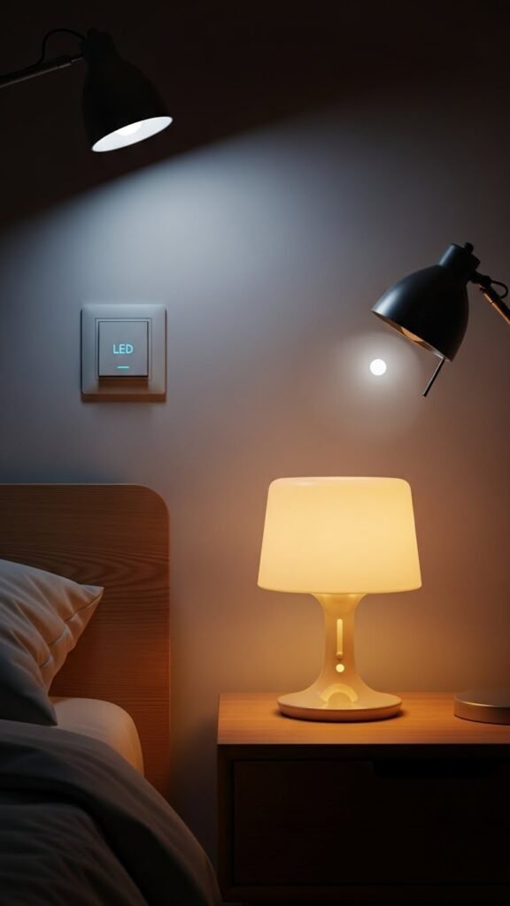 You’ll embrace freedom to shape mood with dimmable bedside lamps and color temperature control, shifting from warm candlelike glow to crisp cool light. Pair with minimalist shades and smart switches for effortless, on-demand romance.