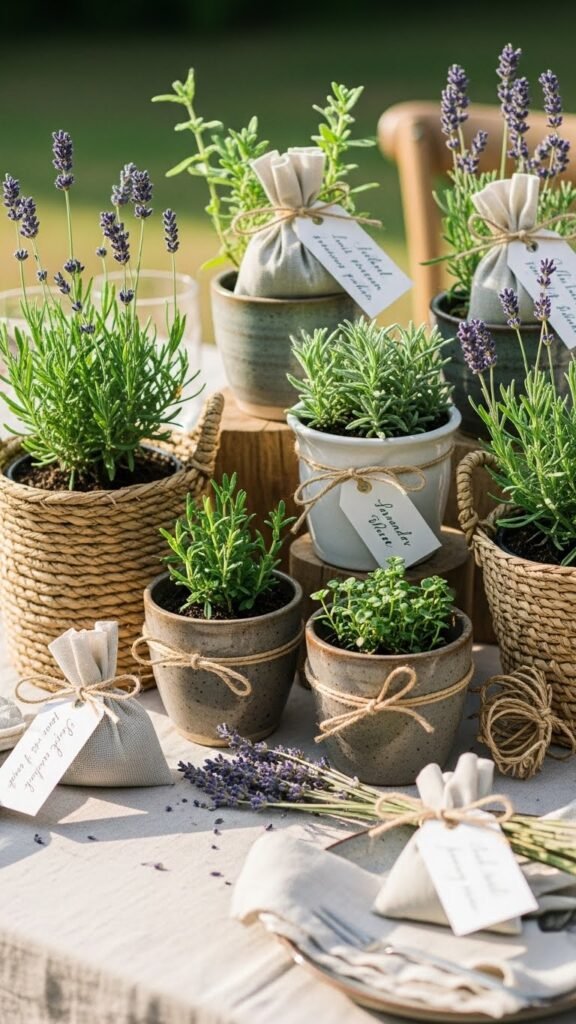 Arrange in varied pottery, label freely handwritten, and let guests take home fragrant, portable freedom—simple, elegant, and intentionally green.