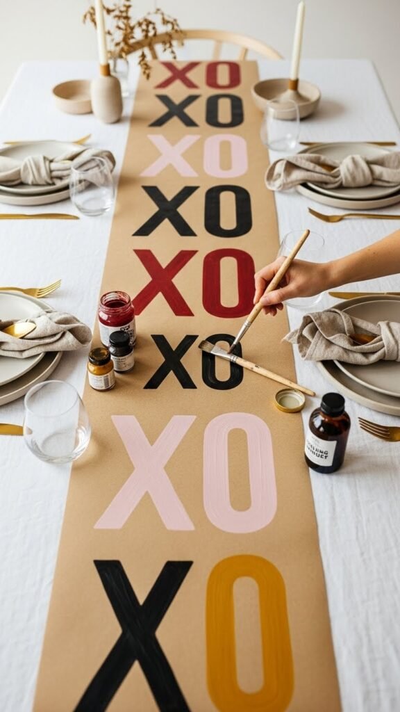 Painted Kraft Paper With “Xo” Table Runner